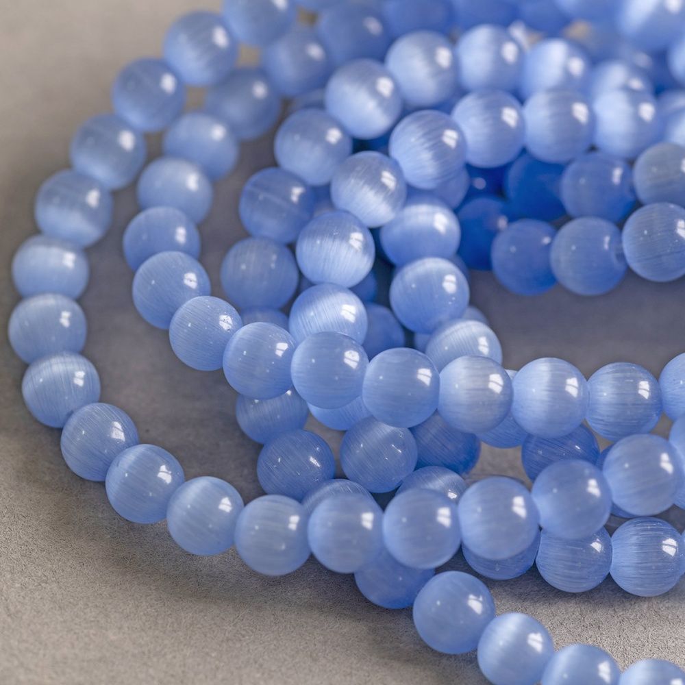 бусина "кошачий глаз", стекло, цвет голубой барвинковый, 5 мм