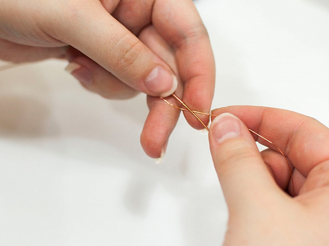 29. Переводим тонкую проволоку на второй конец толстой и снова делаем три витка.