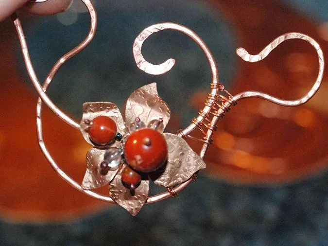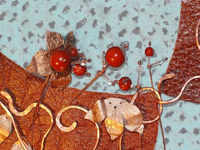 9. Круглогубцами и плоскогубцами изгибаю лепестки и листики. Добавляю элементы из согнутой и частично отбитой проволоки (1,5мм), кончики обрабатываю напильниками