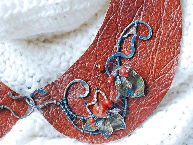 Сегодня у нас на вкусненькое мастер-класс по изготовлению воротничка из кожи с медным декором.