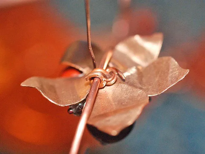 11. Начинаю собирать серединки цветов и листиков. При помощи круглогубцев делаю двойную петельку