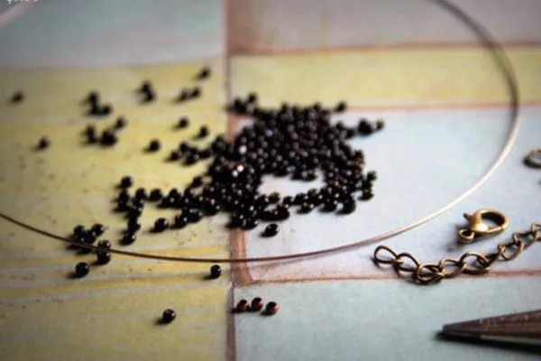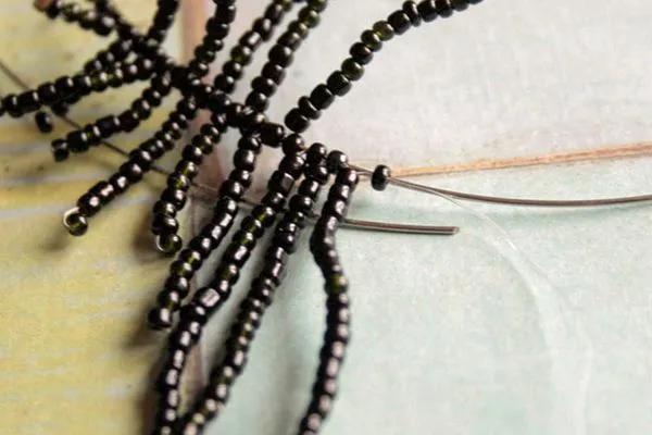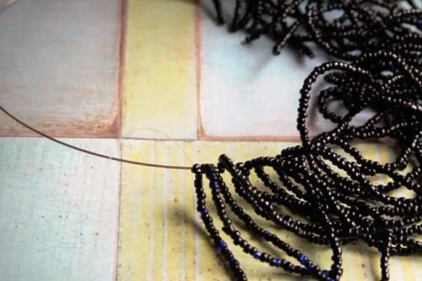 12. Для первого раза советую взять однотонный бисер или с вкраплениями, как на нашем примере.
