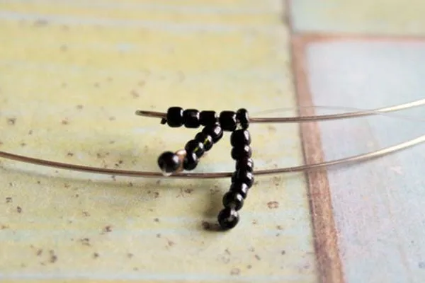 5. И отправляем хвостик в обратном направлении. Зажимную бусину расплющиваем. Один конец надежно закреплен.