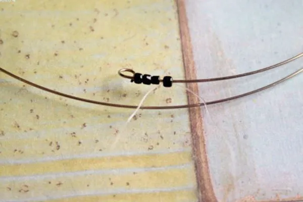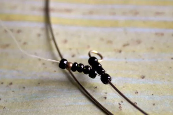 9. Когда леска заканчивается, мы снова берем зажимную бусину и закрепляем.