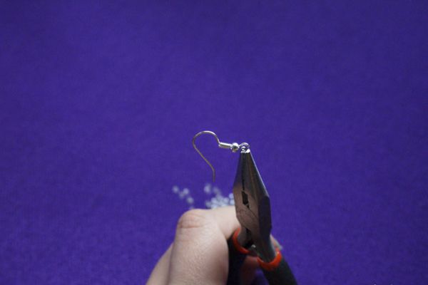 17. Прицепляем нашу сережку к швензе и загибаем петельку обратно.