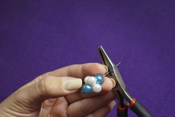 6. Пальцем прижимаем нанизанное к петельке, визуально отмеряем еще около сантиметра и отрезаем лишнее кусачками. Будьте внимательны, отрезанный кусочек может стрельнуть в сторону.