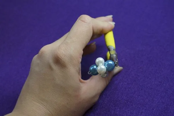 7. Продолжая придерживать нанизанное, немного отгибаем свободный кончик штифта в сторону.