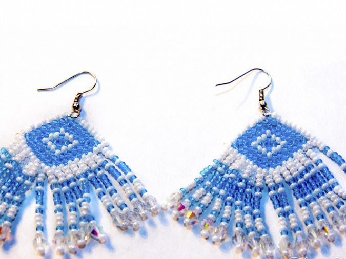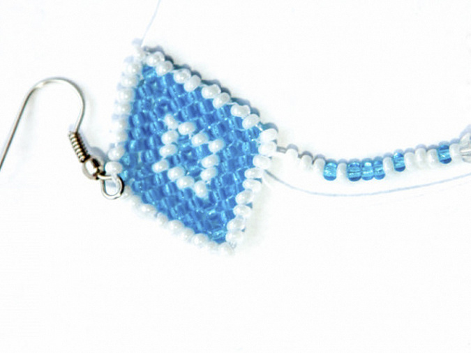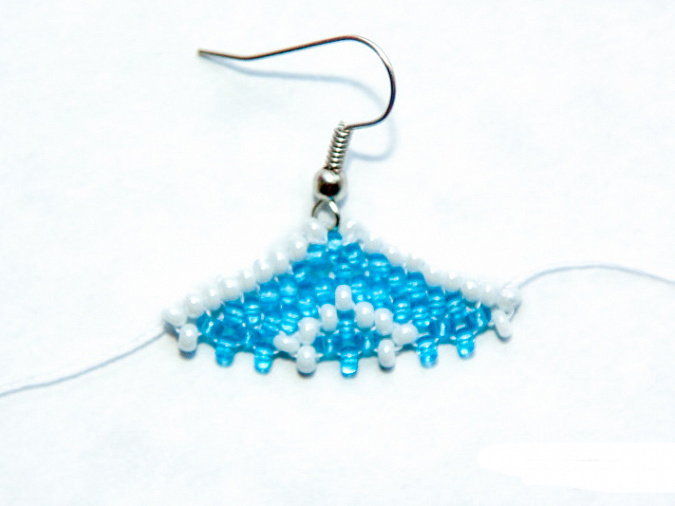 12. По аналогии с серьгами плетем мозаикой основу и приплетаем «висюльки». Получим: