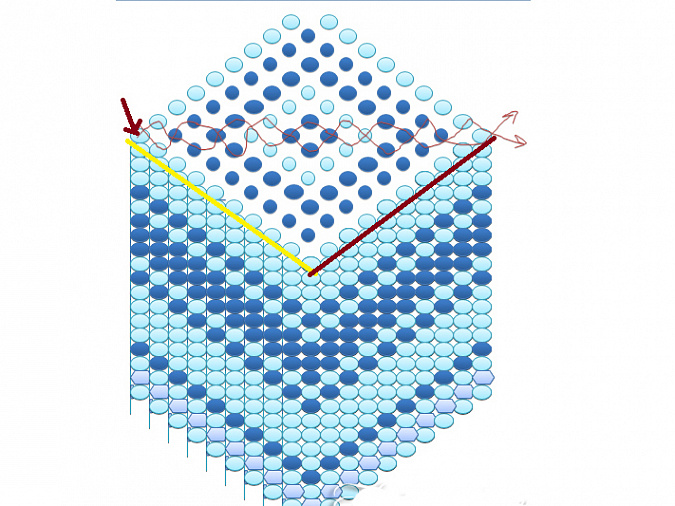 4. Затем одной иголкой возвращаемся на одну бисерину назад:
