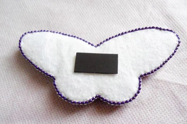 20. Берем магнит. Если у Вас обычный не клеевой магнит, можно его вшить между двумя слоями фетра. Если клеевой, то прикрепляем его к изнаночной стороне.