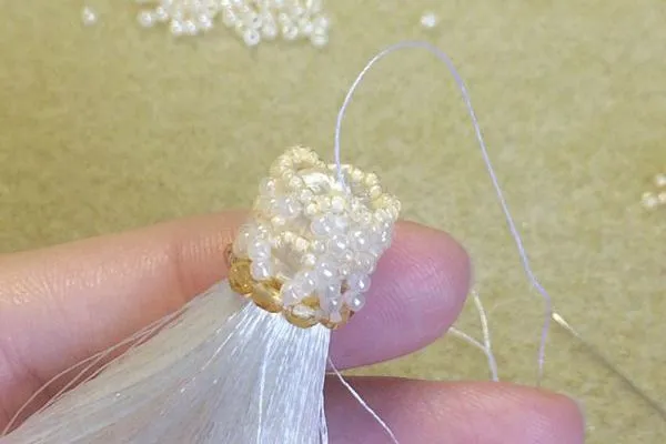 8. Проходим второй ряд 15/0 и хорошо затягиваем.