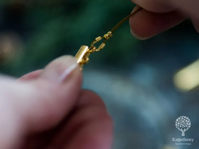 • 3. Далее отмеряем два отрезка тросика по длине цепочки +10 см