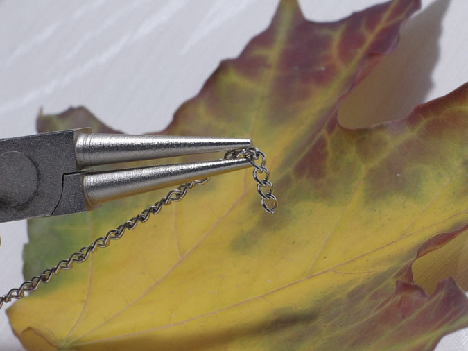 5. Делаем заготовочки из цепи. Я отсчитала 4 звена, но потом при прикреплении добавляла одно. Мне так было проще. Можно вместо этого звена брать колечко. Восемь заготовок мне хватило.