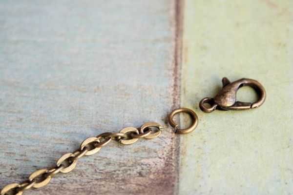 12. с другой стороны, через колечко, присоединим отрезок цепи с размером звена 5х6, для того чтобы можно было регулировать длину колье.