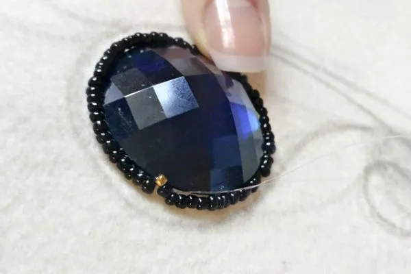 10. Оплетаем риволи согласно нашим наброскам и пришиваем их на свои места.