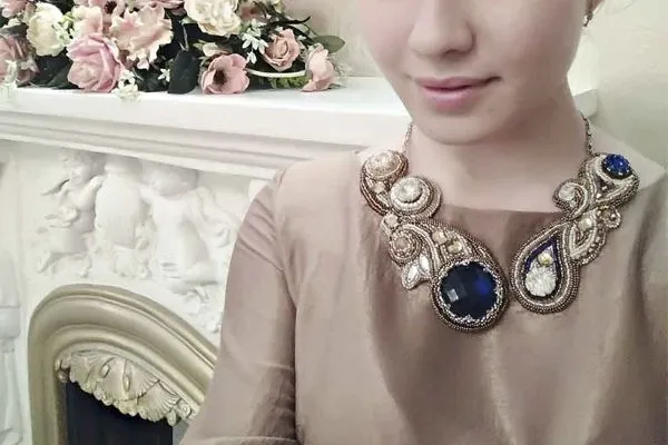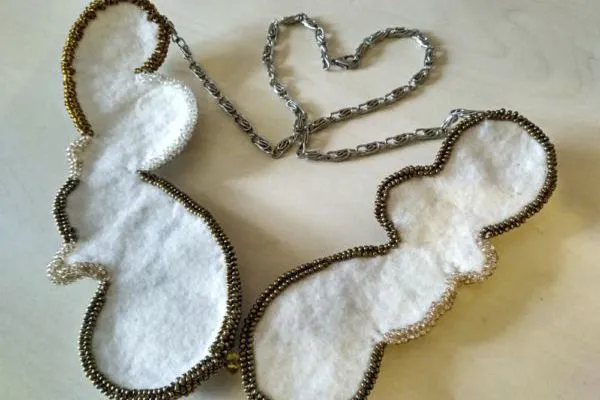 14. После того как были соединены два части изделия, лучше его примерить: приложить на платье или на шею, чтобы понять где лучше расположить цепочку.
