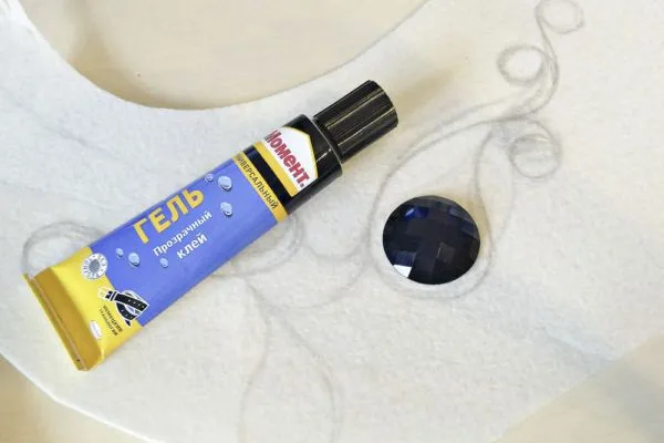 15. Прикладываем обе вышитые части к чистому фетру, обводим их карандашом и вырезаем две части для основания. Крепко приклеиваем их снизу изделия клеем моментом.