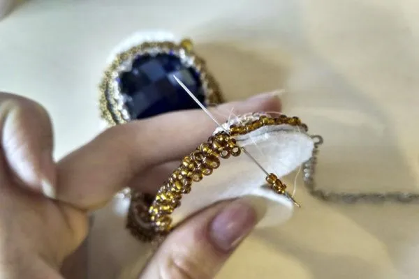 17. Для обшивки берем тот же бисер каким вышит крайний ряд украшения.