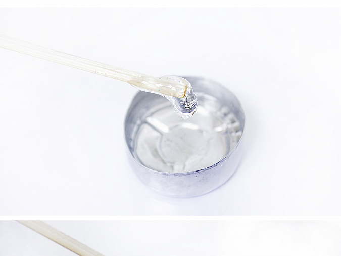 6. Как только разводы исчезнут — эпоксидная смола готова. Пока эпоксидная смесь доходит в тепле, займемся подготовкой основы для будущих сережек.