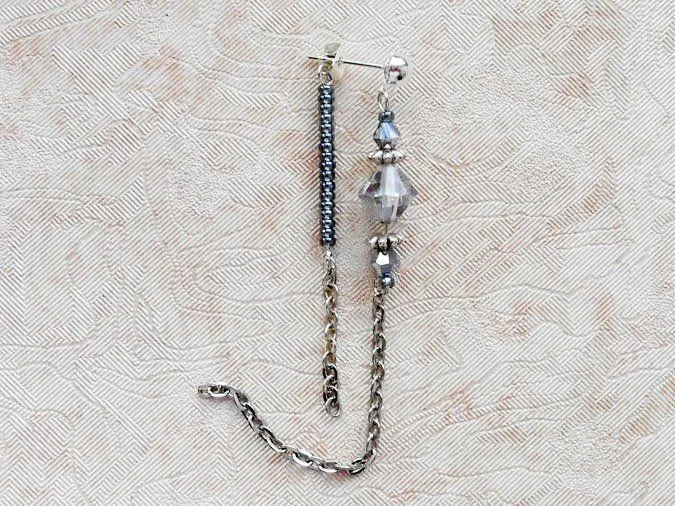 Привет! Я птичка Таня, и сегодня хочу показать еще один вид сережек, выполненных в похожей технике. Длинные серьги с цепочкой и сверкающими биконусами.
