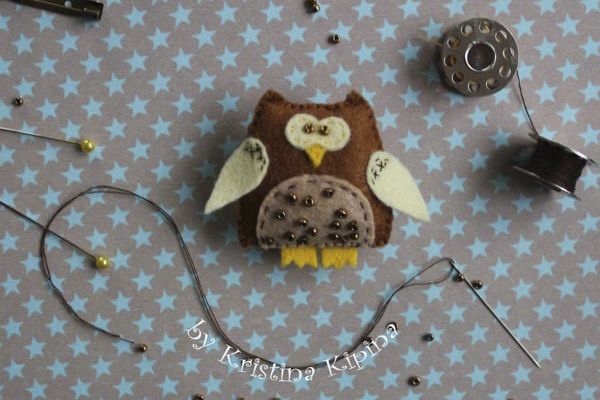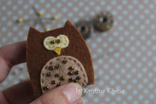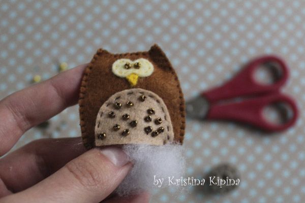 8. Начинаем шить. Декорируем пузико совы бисером и пришиваем его к тельцу.