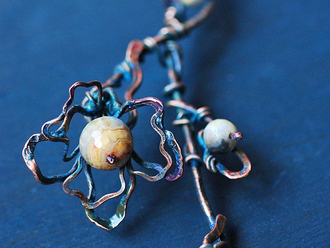 Представляем вашему вниманию мастер-класс по изготовлению цветка из медной проволоки - можно использовать как для шпилек, так и для любого другого изделия (как пример представлены брошь-фибула и колье). Мастер-класс подготовила