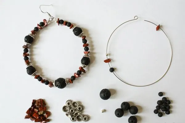 • 3. Нанизываем все бусины и шапочки для бусин согласно фото.