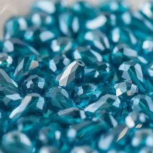 бусина "капля", граненая, стекло, цвет бирюзовый радужный, 15х10 мм